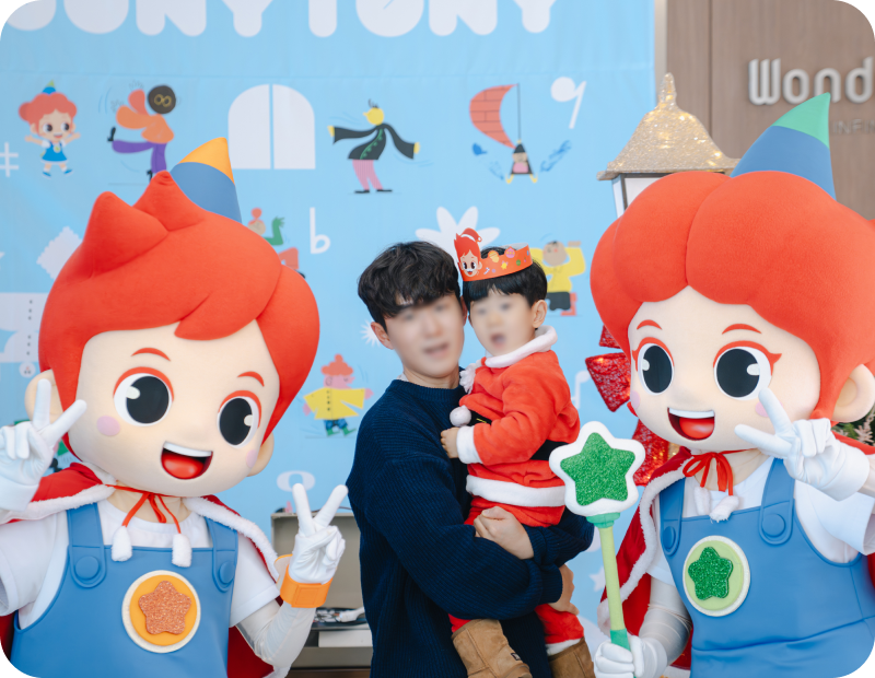 아이들은 포토타임에서 주니토니와 함께 사진을 찍으며 특별한 추억을 남길 수 있습니다.