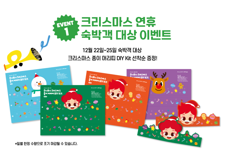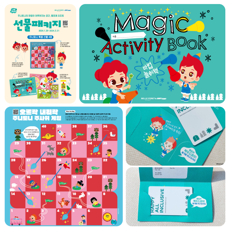 매직 크레용으로 구성된 특별 선물 4종과 벨포레 리조트 숙박권과 대표 놀이 시설인