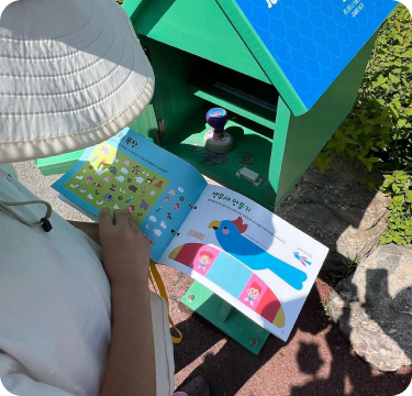 아이들이 목에 걸고 다닐 수 있으며, 스탬프를 찍는 페이지뿐만 아니라
